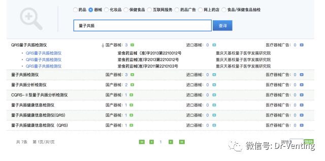 張海濤此后成立重慶天基權量子醫學發展研究院,并開始量產量子共振檢測儀,在國家藥監局官網上,我們查詢量子共振檢測儀后發現,只有重慶這家量子醫學發展研究院生產的檢測儀適用范圍包括對精神、心理疾病的輔助診斷。該檢測儀的注冊日期截止至2017年1月。