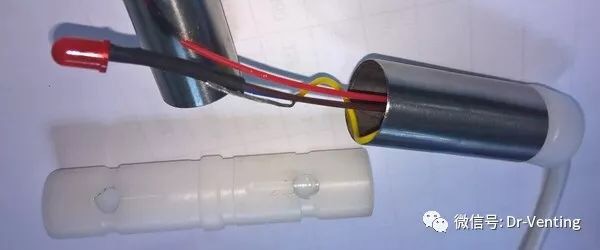 金屬棒擰開之后里面有兩根線管一個發光二極管。兩根線接兩個外面的金屬皮,手握的時候,人體充當導體聯通兩個金屬外殼。這就是“人體磁場”所有的采集裝備,你相信用這種東西能夠測出多種生理指標甚至是染色體數目嗎?