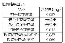 數據截圖夏天來了,許多人喜歡在晚餐的時候松花蛋配啤酒,非常愜意。可有人說,松花蛋里面含鉛,這種重金屬會危害人的健康,導致鉛中毒。真的嗎?近日,華商報記者在大型超市、社區超市、自由市場選購了市面上常見的