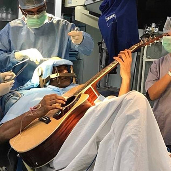 為普拉薩德主刀的醫(yī)生說:“在整個手術(shù)過程中,普拉薩德都是清醒的,而且一直彈著吉他。因為只有他在彈奏時才會出現(xiàn)這種病癥,而這種神經(jīng)反饋對我們而言很重要,這能幫助我們更精準地定位受損神經(jīng)。”