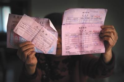 2月24日,房山某小區(qū),85歲的楊慧(化名)拿著幾張買收藏品時的收據(jù)和購買憑證。