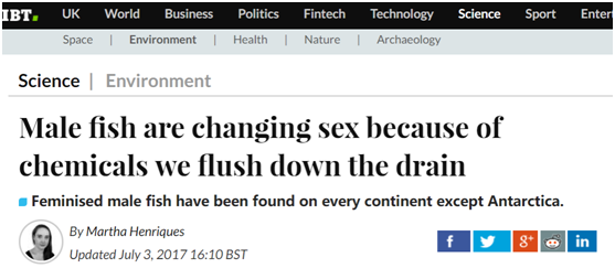 這項(xiàng)研究由英國(guó)埃克塞特大學(xué)的Charles Tyler教授主導(dǎo),他是一名環(huán)境生物學(xué)家和生殖學(xué)家,主要研究的方向就是化學(xué)物質(zhì)對(duì)野生動(dòng)物的內(nèi)分泌干擾。研究顯示,有超過2000種化合物被認(rèn)為是環(huán)境中的類雌激素,這意味著如同人類女性身上分泌的雌激素一樣,這些環(huán)境中的類雌激素將給生物體帶來(lái)同樣效果。