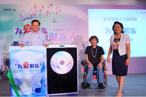 圖為中國(guó)首支漸凍人公益歌曲《為愛(ài)解凍》發(fā)布儀式