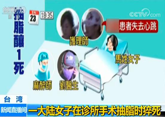 23日,一名大陸女子在臺(tái)灣知名醫(yī)療美容診所進(jìn)行抽脂手術(shù)時(shí)猝死,警方已將醫(yī)師和麻醉師等相關(guān)責(zé)任人移送檢方偵辦。
