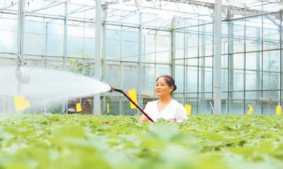日前,在河南省南陽市內(nèi)鄉(xiāng)縣灌漲鎮(zhèn),農(nóng)民正在標(biāo)準(zhǔn)化廠房里給伏牛山金釵石斛種苗澆水。