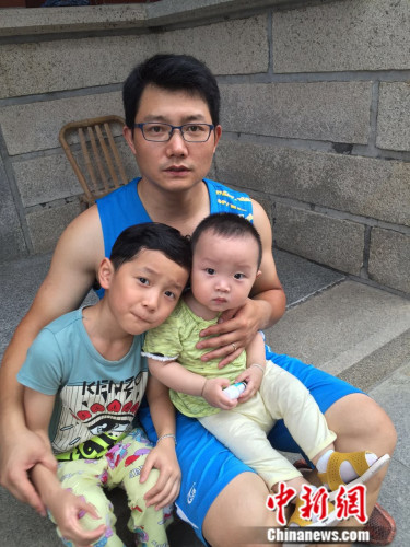圖為二孩“奶爸”和兩個(gè)可愛的孩子。呂春榮攝