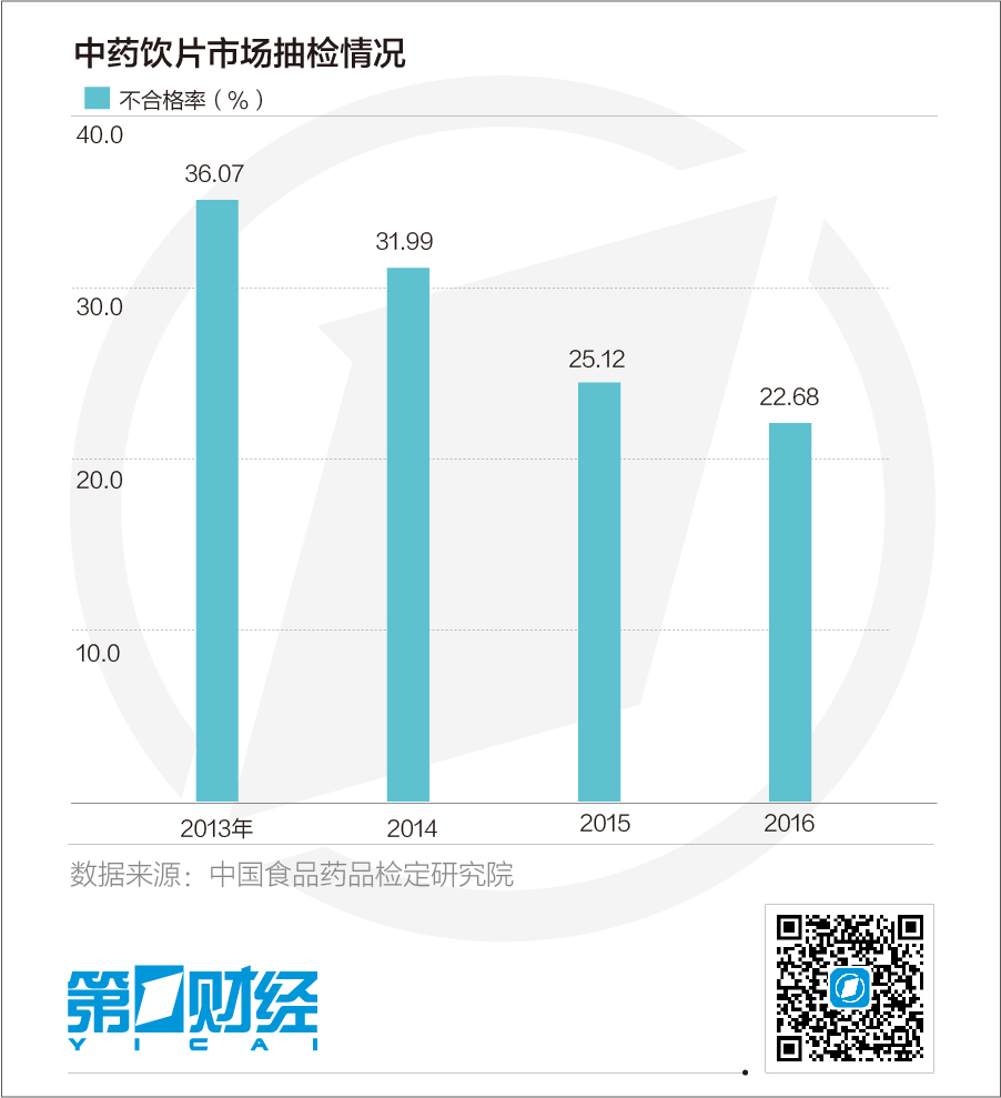 “2013~2016年全國藥品質量抽驗監測表明,中藥材與飲片總體合格率分別為64%、68%、75%、77%,合格率呈逐年提升、穩步向好的趨勢。但相對于其他藥品,中藥材及飲片的不合格率依然較高。”中國食品藥品檢定研究院(下稱“中檢院”)中藥民族藥檢定所所長馬雙成對第一財經表示。