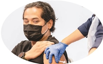 馬來西亞科學、工藝和創新部長哈伊里·賈邁勒丁在森美蘭州林茂地區一家醫院接種科興新冠疫苗的資料照片。