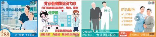 圖為淘寶、京東等電商平臺提供陪診服務的店家截圖。