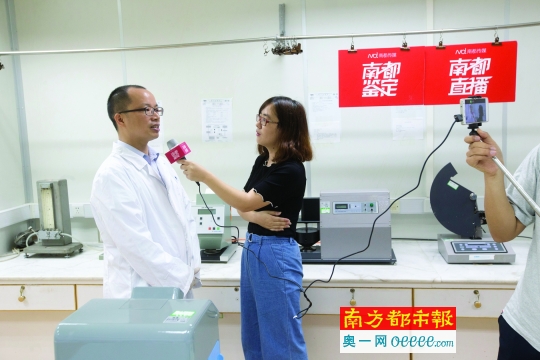 廣東出入境檢驗檢疫局檢驗檢疫技術中心輕工消費品安全實驗室工程師黎敏在接受鑒定君采訪。