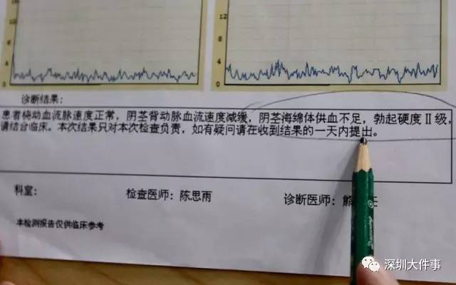 在導(dǎo)醫(yī)帶領(lǐng)下,記者分別進(jìn)行了驗(yàn)?zāi)颉⒊檠⒉食?ldquo;陰莖超聲血流圖檢查”、“陰莖敏感神經(jīng)檢測(cè)”等環(huán)節(jié)。“熊主任”和檢查的醫(yī)護(hù)人員都表示,檢查結(jié)果當(dāng)天即可生成。