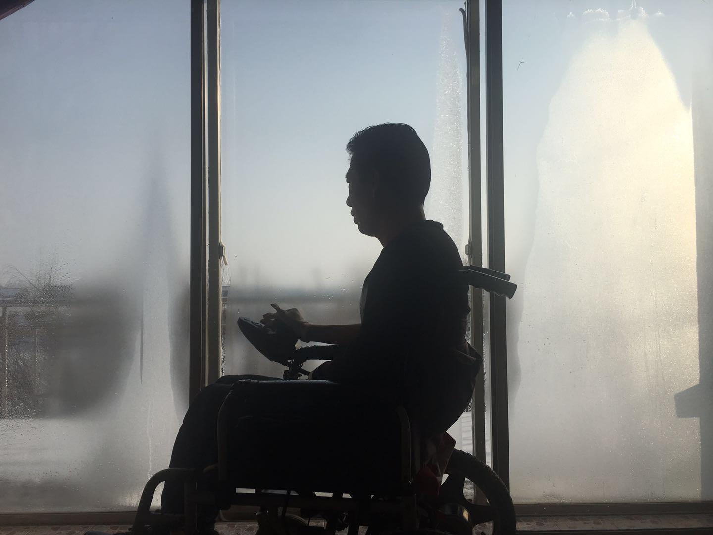 他操縱著輪椅出了家門,穿過被壓實的積雪,十幾米的路程每天這樣重復著。大部分時候自己能完成,但雨雪天氣遇到上下坡時,仍需要有人能搭把手推下去輪椅。