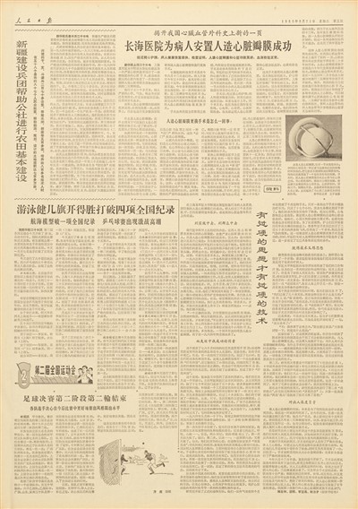 中國人不僅能造心臟瓣膜,也能自己進行精密的手術。1965年9月21日,人民日報第五版刊發報道《揭開我國心臟血管外科史上新的一頁 長海醫院為病人安置人造心臟瓣膜成功》,記錄了朱家麟憶及的那場“無聲的戰斗”。