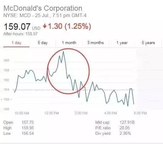 看看,消息就是快,據此,傳言麥當勞股價大跌,并且弄出了個麥當勞股價走勢圖,很像模像樣的;