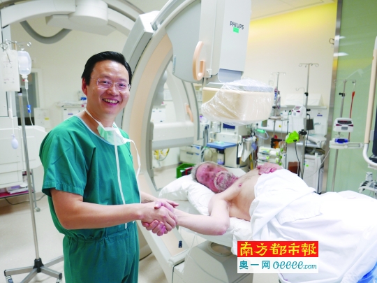 這天為他施術的是一名來自中國的心內科醫生———廣東省人民醫院心內科副主任、廣東省醫師協會心臟重癥分會主任委員張斌教授。這名病患,雖然經外國同行從血管的正向、逆向進行了嘗試,外國專家已認定介入治療幾乎不可能對其進行疏通,張斌卻仍有將這條堵塞的心臟供血通路打開的信心,輕巧地撥弄著纖細的介入導絲,儼如擁有強悍掘進能力的地鐵盾構機,導絲一步步地通過血管閉塞處,兩天前將病患搞砸的瑞士專家,在旁邊計時。
