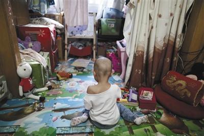 美美在家中獨自玩,大多數(shù)時間因為擔(dān)心感染,腫瘤兒童只是在家和醫(yī)院度過童年。A14-A15版攝影/新京報記者侯少卿