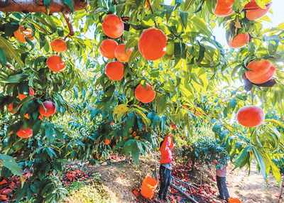 近日,河北省遵化市興旺寨鎮(zhèn)西達(dá)峪村農(nóng)民在山地果園收獲秋桃。