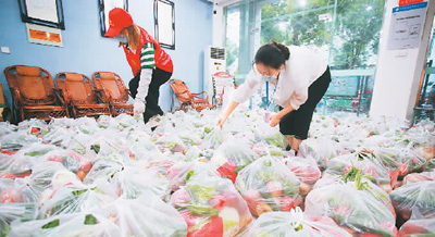 新冠肺炎疫情發生以來,江蘇省揚州市廣陵區湯汪鄉杉灣花園社區組織志愿者為居民配送蔬菜,解決了疫情防控期間居民購買蔬菜困難的問題。
