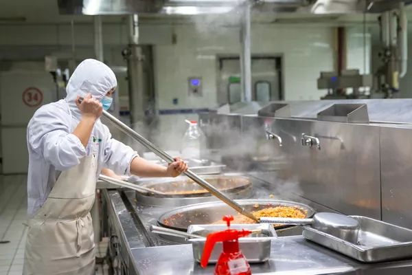 制作冷鏈餐的重要環(huán)節(jié)是降溫。經(jīng)過兩次降溫,將熟制食物溫度降到0-4攝氏度左右,便于運輸