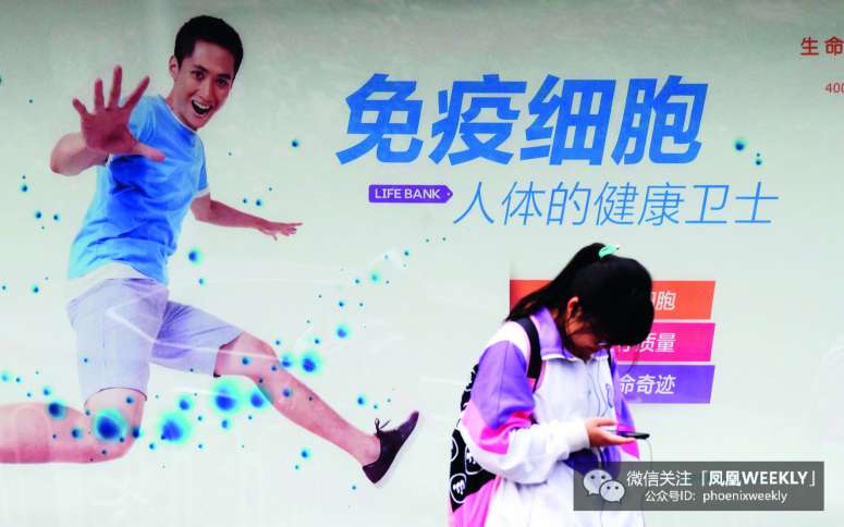 2016年5月9日,天津公交站牌上的一則免疫細胞產品廣告。