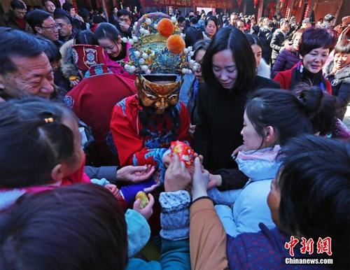資料圖:沈陽故宮掛門神迎小年。 孫昊聲攝