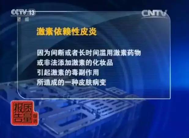 中山大學附屬第三醫院皮膚科賴維主任表示:“因為激素一是具有收縮血管的作用,而膚色與血管的血紅素有關,血管收縮后,皮膚會變白;二是激素具有機體水鈉潴留作用,就是皮膚含水量會增加,會變得水嫩。所以,敷完面膜以后覺得皮膚很舒服,看上去很光亮、很漂亮,但實際上這是害人的東西。”