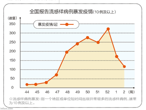 自2017年11月以來,各地流感病人呈暴發增量。雖然人們漸漸的通過患病獲得了抵抗力,醫院中的就診人流較前些日子下降,但是據國家疾控中心2018年1月9日新聞發布會透露,至2018年第1周(1月1-7日),我國流感發病水平仍然高于2015-2017年同期水平四到八成。當前是近三年來最大的流感流行水平“大年”,流感確診住院與重癥病例數均有所上升。