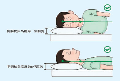 因每個人的身高、體型存在較大的差異,所以枕頭的高度沒有標準答案。真正影響頸椎健康的,是枕上后的擠壓高度。目前,普遍認為,平躺時枕頭被壓縮后的高度為6—7厘米(大約一拳高)、側臥時枕頭被壓縮后的高度為一側肩寬,是比較理想的枕頭的高度。