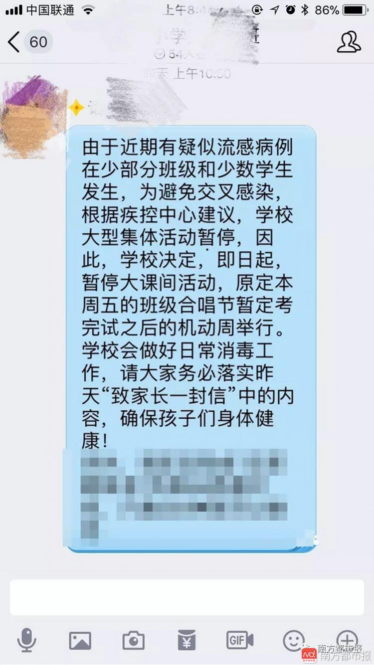 天河區(qū)疾控中心疾控科匡志明說,從其傳染之快、之廣來看,可初步認(rèn)定為流感,但是具體的檢驗(yàn)報(bào)告還未出爐。他表示,初步估計(jì),駿景小學(xué)共有50多名學(xué)生患病,是今年天河區(qū)內(nèi)較為嚴(yán)重的案例。該校共4個(gè)班級(jí)150多名學(xué)生緊急停課。