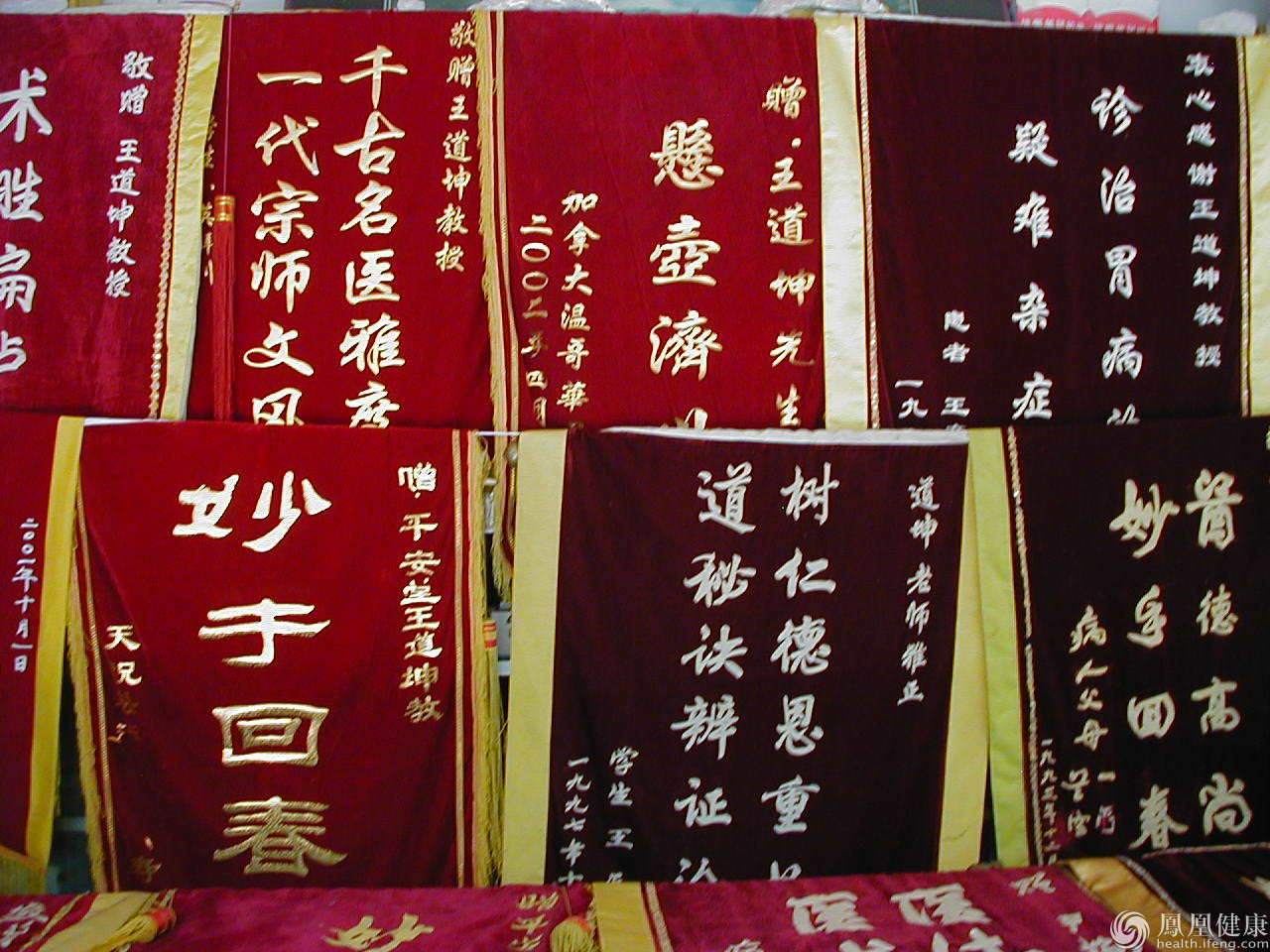 早在2005年王教授拿出省吃儉用的10萬元積蓄,設立“王道坤英才獎學金”,以鼓勵品學兼優的中醫學子刻苦鉆研。行醫多年,形成自己的生理觀、病理觀、辨證觀、治療觀、養生觀以及獨特的遣方用藥規律等一系列創新理念,代表作《醫宗真髓》、《新脾胃論》等。同時,多年堅持主攻慢性萎縮性胃炎(CAG)及其癌前病變、胃癌等;開創敦煌醫學研究先河,填補世界顯學“敦煌學”空白。研制出“萎胃靈”系列院內制劑,治愈CAG及癌前病變3萬多例,外號叫“胃病王”。至今仍在臨床第一線,年接診量萬余人次。