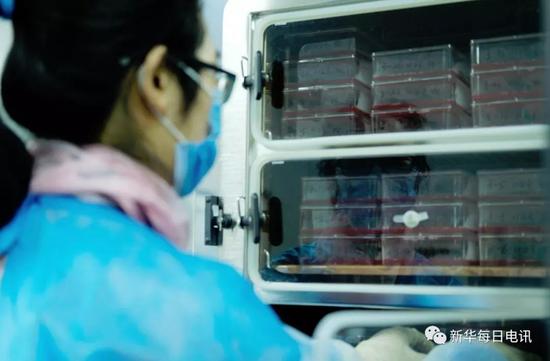 屠呦呦團隊研究人員將養(yǎng)殖有瘧原蟲的血液儲存到冰箱中。新華社記者孟菁攝
