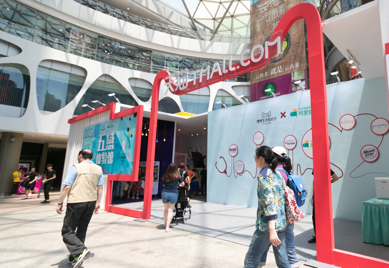 (6月17日-18日,阿里健康集結杰士邦、強生、海儷恩、拜耳、雀巢等針對年輕人群的知名品牌,在上海悅達889廣場搭建了“健康進化論”的五感體驗館,線上線下互動推廣健康生活方式新概念。)