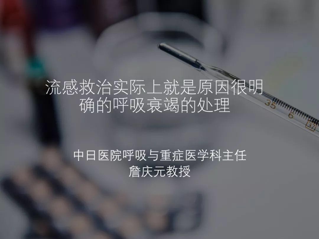 用詹教授的話說:流感救治實際上是【原因很明確】的呼吸衰竭的處理。重癥流感的控制首先是原發病治療,主要是指抗病毒治療。其次是支持治療,包括呼吸支持和其他臟器的支持治療。最后是并發癥與合并癥的治療。