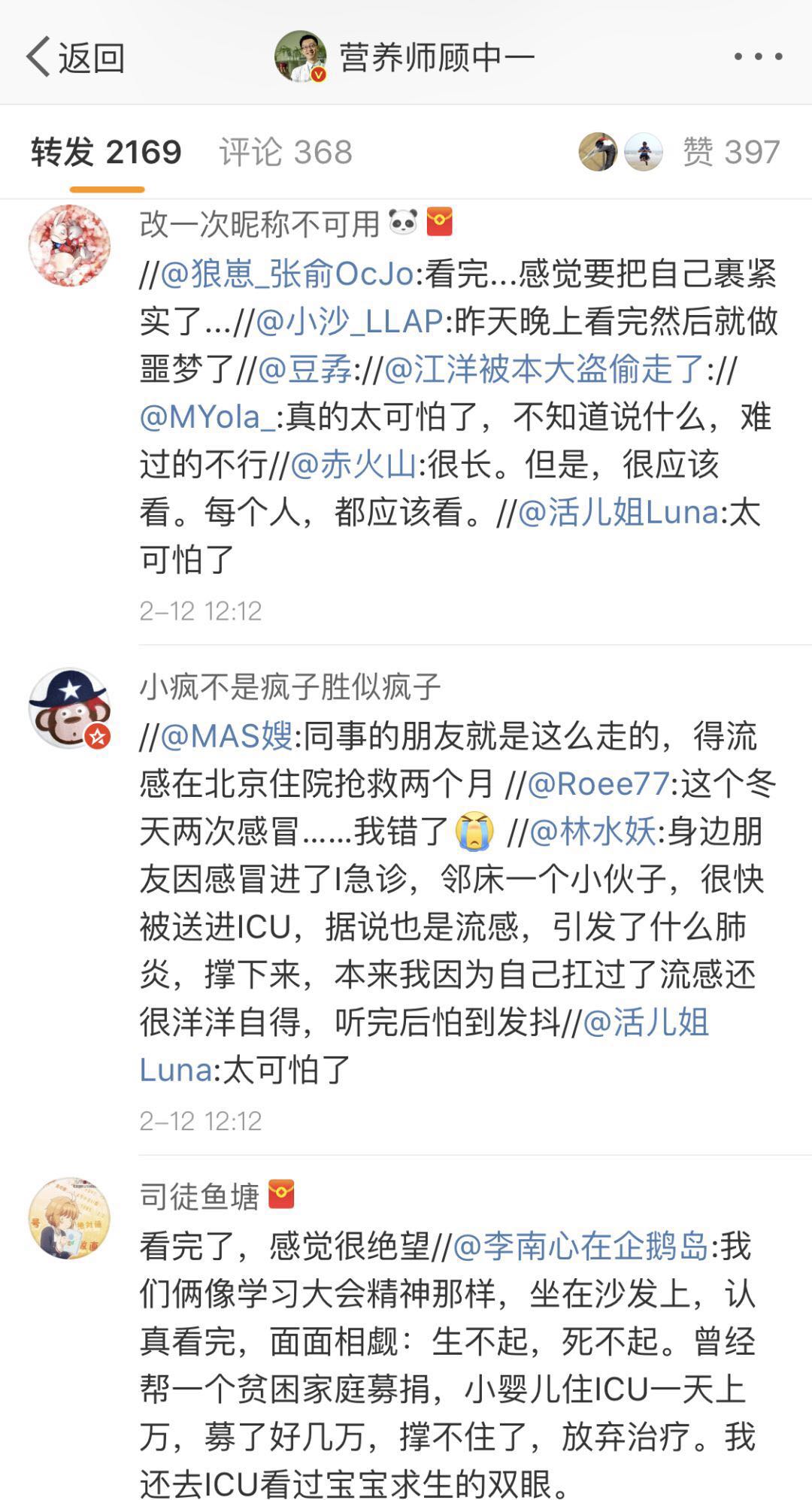 我昨晚在微信群里看到一篇文章流感下的北京中年,看完立刻把它發到了家庭群還有微博,幾個小時過去微博轉發已經兩千多……很多人都在評論中感慨,健康多么重要、患者多么不容易、真實的生活多么脆弱等等。