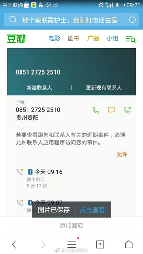 @蔡聯霞_101 所出示一份處理文件顯示,遵義市播州區人民醫院通報稱,該院兒科護士蔡聯霞在微博發表和醫務人員救死扶傷精神不相符的言論,給醫院造成了非常不當的影響,同時導致全國各地網友不停撥打該院辦公室電話進行投訴,影響了醫院的正常工作,醫院對此問題高度重視,立即成立了以院長為組長的調查組,處理結果如下:對蔡聯霞罰款5000元,予以除名。