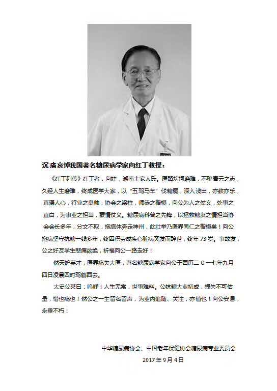 2017年9月4日凌晨4時(shí),我國(guó)著名糖尿病學(xué)家向紅丁教授因心臟病突發(fā)而辭世,終年73歲。