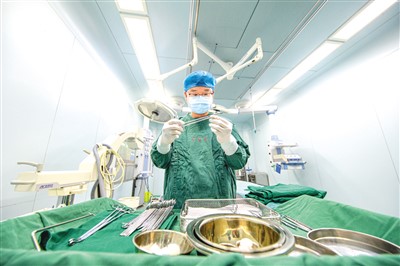 圖為5月11日,河北省雞澤縣醫院手術室護士黃龍博在做術前準備。