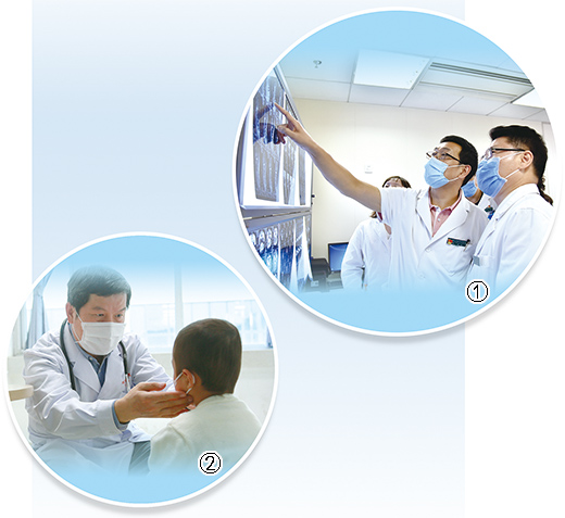 圖①:國家兒童醫學中心主任、北京兒童醫院院長倪鑫(中)在兒童腫瘤多學科聯合門診出診。