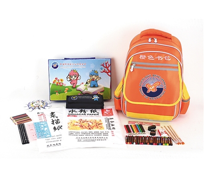 葉飛:目前已經發放了10110個。需要注意的是,“橙色書包”不僅僅是一個書包,里面還有一套美術用品,包括水粉顏料、水粉筆和彩色鉛筆,還有一些學習用具,包括鉛筆袋和鉛筆刀。