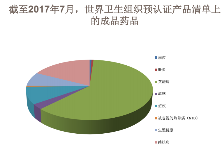 總的來看,一般申請(qǐng)WHO預(yù)認(rèn)證的產(chǎn)品主要是一些疾病治療急需的藥品或醫(yī)療器械,比如抗艾滋病毒/艾滋病類藥物、瘧疾類藥物、結(jié)核類藥物、生殖健康藥物、流感藥物、急性腹瀉藥物和被忽視的熱帶疾病藥物以及部分抗癌藥品。