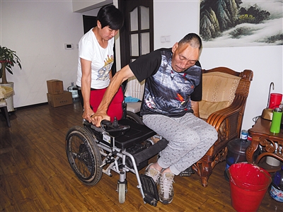 從沙發到輪椅,他需要在妻子攙扶下,一點一點挪動才能完成。這樣的輪椅,已坐壞兩個了。