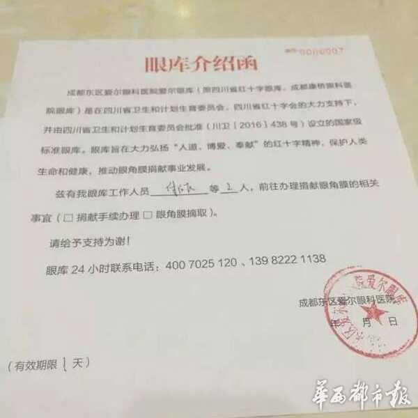 周女士系儀隴土門鎮人,今年48歲,在南充某公司工作,丈夫在北京打工,兒子小鄧在成都讀研。媽媽突然離世,小鄧悲痛萬分。28日晚上9點,小鄧趕到南充。途中悲痛萬分的小鄧決定:捐出媽媽的眼角膜,讓天堂里的媽媽繼續看世界。于是他聯系紅十字會……
