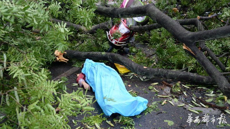 7月28日下午,四川南充城區遭遇狂風、暴雨、冰雹襲擊。在茂源南路口,狂風吹斷的一棵大樹,砸中騎電瓶車過路的周女士,周女士帶著遺憾離開了這個世……