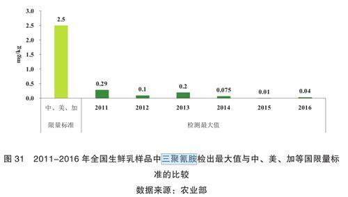 報告稱,2016年監測結果表明,我國乳品質量安全風險可控,整體狀況良好。2011-2016 年,生鮮乳的質量安全水平大幅提升。生鮮乳中不存在人為添加三聚氰胺、革皮水解物等違禁添加物的現象,生鮮乳收購、運輸行為規范。自嬰幼兒奶粉事件以來,不斷強化生鮮乳質量安全監管,有效遏制了違禁添加等違法行為。
