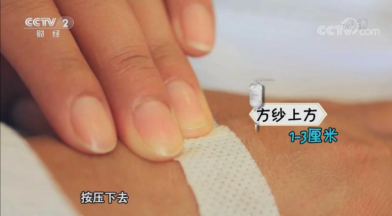 李秀芬提醒:“一般來說,用三指法和拇指法依從度是最高的。輸液結束,護士把針拔除之后,會留一條帶棉紗的小方紗輸液貼蓋在針眼處,然后讓病人用他的三個手指,在方紗上方一到三公分的位置按壓下去?!?/p>