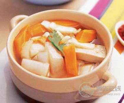 做法很簡單:將大白菜、白蘿卜、胡蘿卜和豆腐洗凈,切成條,用沸水焯一下撈出待用;另起油鍋,炒香適量辣椒醬后倒入清湯,把白蘿卜、胡蘿卜、豆腐放入鍋中,大火煮開后加入大白菜再次煮開,用鹽調味,撒上香菜末盛出即可食用。需要注意,白蘿卜富含維生素C,VC最怕氧化,而胡蘿卜含有很高的氧化酶。為了不破壞影響,先將胡蘿卜煮兩分鐘左右,再加入白蘿卜。