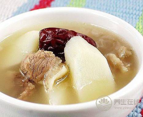 山藥燉土雞,健脾和胃,適于秋冬滋補,將山藥切成段,用高壓鍋將雞塊稍壓三成熟后,倒入山藥段并加入枸杞等輔料,再用微火燒20分鐘即可。山藥燉排骨,滋腎益精,將排骨用熱水汆燙之后洗凈,再放入鍋中加水煮20分鐘,放入切好的山藥,加上其他材料并調味,再以中火繼續熬煮15分鐘。