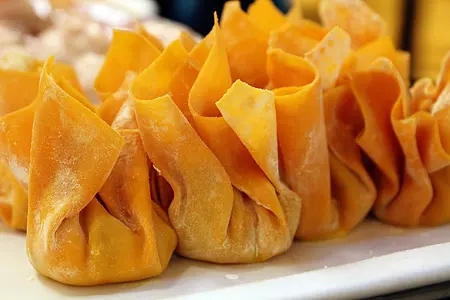 2、豬腎制凈,研爛,入陳皮(磨粉狀)末、花椒、醬油,做餛飩。