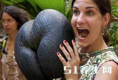 其實這種水果就是海椰子,那你應該就知道這種水果是哪個國家的國寶了吧,其實就是舍塞爾的國寶,這種水果的長相還真是讓人說不出的感覺呢,你們吃過那么多的水果,這樣的水果看見還真是無從下口呢。