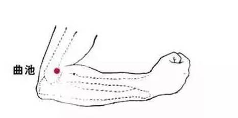 位置:肘窩上有曲池穴,位于肘橫紋外側端,屈肘,當尺澤穴與肱骨外上髁連線中點,大腸經的濕濁之氣聚集于此。